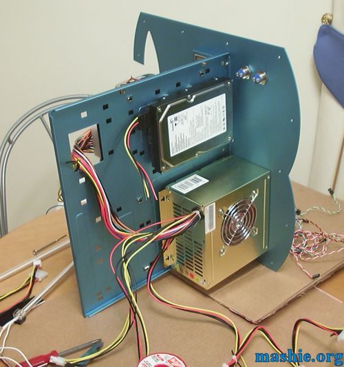 ![]() Even more wire wrap had to be used here, as always I use the 1/8" version of it. The power and reset wires are hidden between the motherboard and the tray.