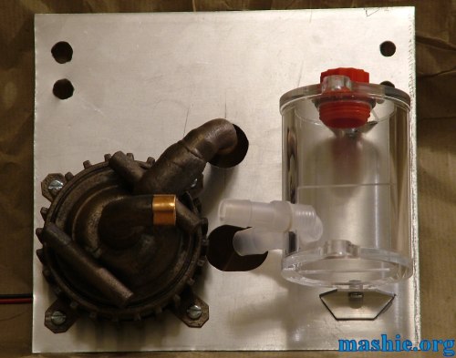 ![]() Pump and reservoir fitted for testing, it will be a very short piece of tube between the pump and the reservoir.