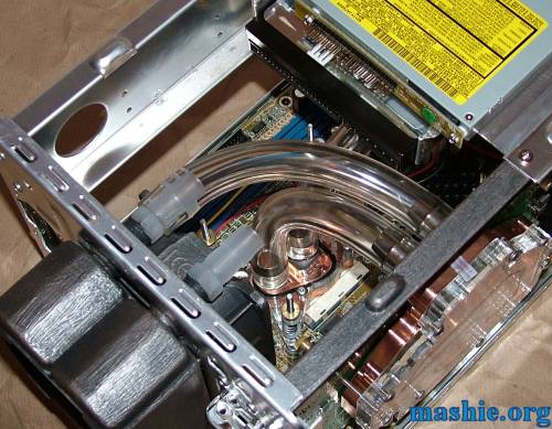 the hose from the VGA block. But as you can see that issue was swiftly dealt with by moving the drive forward as far as a possible. The lack of space behind the