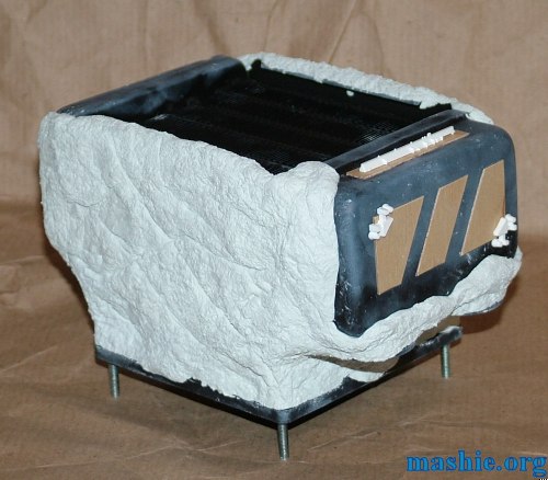 ![]() Two packages of Milliput later the radiator plus duct was looking sligtly different. Also some plywood and plastic scraps were added for the over all looks.
