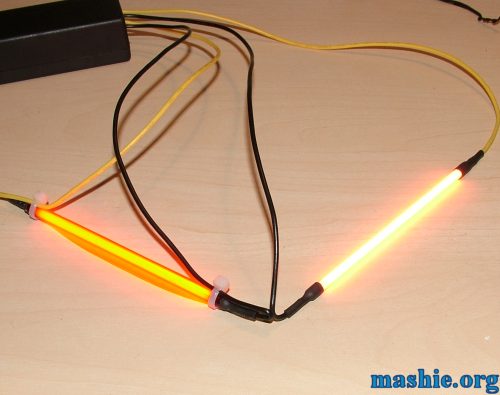 after they got stripped from the acrylic tube and the exposed wire is gone by having one wire connected to each end.