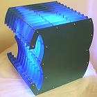 | A free form case built in the shape of a three to celebrate the Intel Pentium 4 3GHz CPU. The whole case was designed in CAD and made out of watercut anodised aluminium. Read the full worklog here...