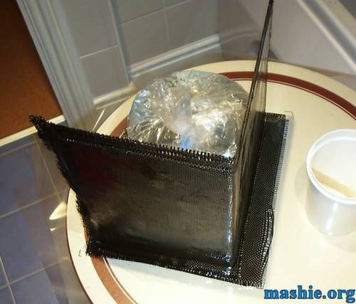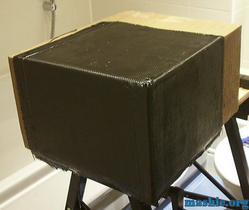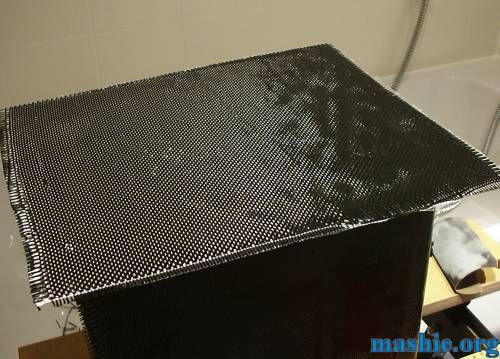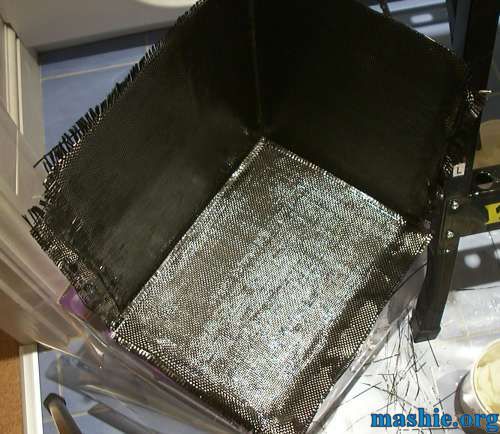 A few more layers were added all around so the final thickness is six layers of carbon fibre on each side.