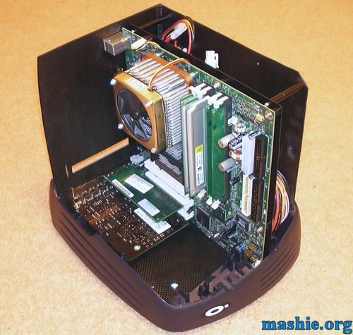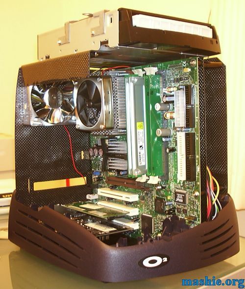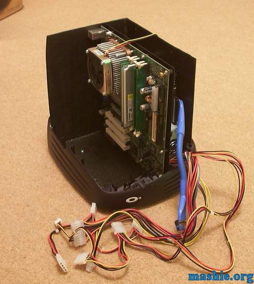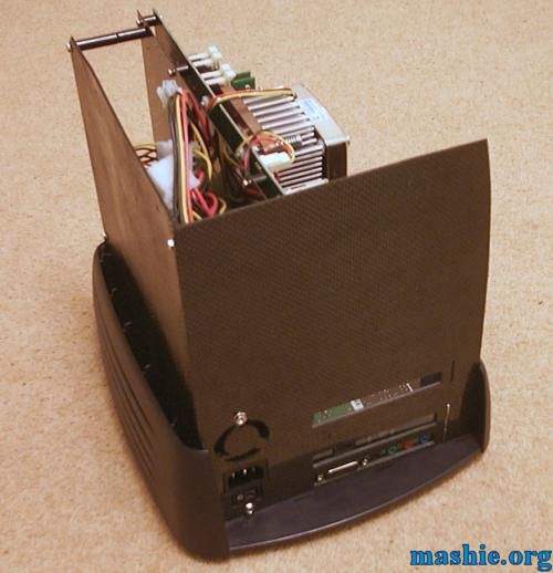 ![]() Motherboard and PSU is installed after a lot of cutting, drilling and filing. Holes for keyboard/mouse and USB was added after the picture was taken.
