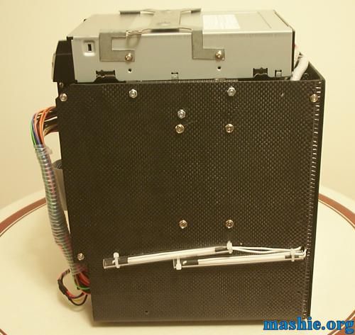 ![]() Not really an exciting shot, just shows the screws holding the HDD using mounting holes on the bottom of the drive. Also the two blue 4" CCFLS mounted, that you only could see the inverters for earlier.