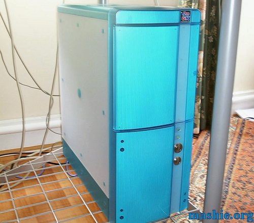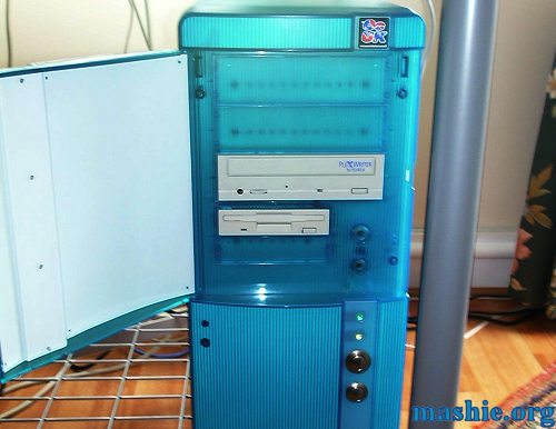 ![]() Beige drives, not very suitable at all with the half transparent look the rest of the case has. You can also see the original power and reset button that was behind the door.