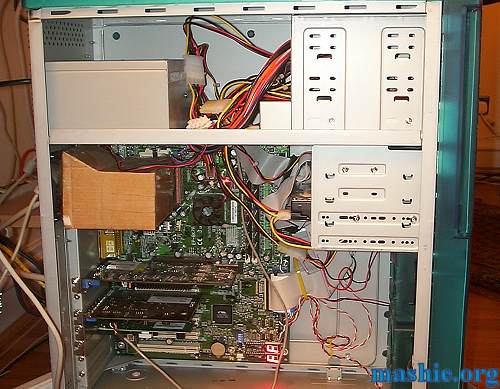 ![]() The case had been used for a few months before the modding started. The duct connecting the SK-6 HSF to the rear is made out of cardboard and tape. Very ghetto