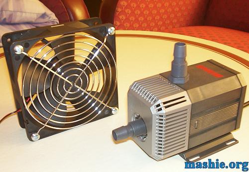 ![]() First out was the investment of an Eheim 1048 pump and an YSTech 120mm fan. The pump came from an aquarium shop and the girl behind the counter stared at me in horror when