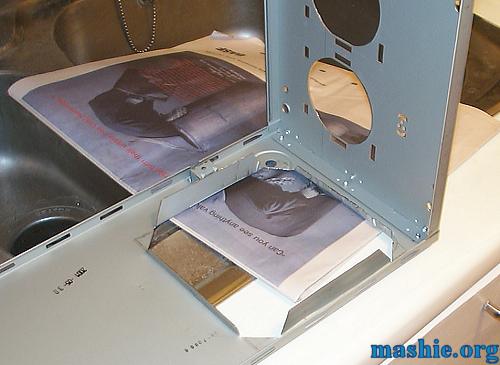![]() Next on the list was to move the floppy drive to a 5.25" bay and get rid of the beige look. A modified blank faceplate and a few 5.25" to 3.5" spacers