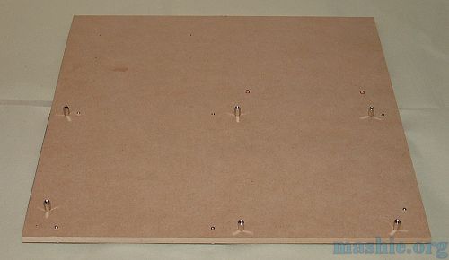 feature with MDF is that it can be threaded using normal metal taps. After drilling a fair number of 2.5mm holes they were quickly threaded