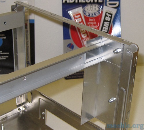 ![]() A few aluminium profiles cut to size will become the new internal structure. By using a bigger L-profile on the right no additional material was needed to fill up the extra 15mm space on that side. The U-beams are 10x22.5mm.