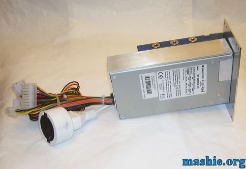 ![]() The stainless steel bracket is used for installing the PSU in the hole of a normal ATX supply.