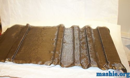 The first attempt failed miserably since I miss judged how keen the fibre mat was to stay in the shape it was told to be... So this is the solution, a few drops of 3s gluee here and there and the fabric was forced into the preferred position before the epoxy could be added.