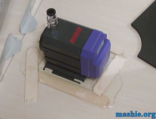 ![]() The new pumpmount made out of epoxy has been cut, drilled and ready to use.