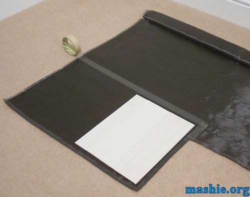 ![]() Next step is to measure the pieces needed from the roll of fabric. To minimize the waste of carbon fibre it is a good idea to apply tape where you intend to