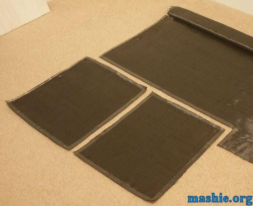 There are two approaches for making panels with carbon fibre, the one above using carbon fibre fabric with pre impregnated resin that needs vacuum and heat to cure for best possible performance. This makes it suitable for extreme conditions but also very expensive and complicated to manufacture. The approach used here won't give the same extreme strength/weight ratio but will make it easy enough to do home at the kitchen table. The process is known as wet layup, carbon fibre fabric is mixed in layers with epoxy resin and cured in normal room temperature. Carbon fibre, like fibreglass, can cause serious respirtory problems if you inhale shards. Always wear a face mask when handling the raw cloth or cutting a finished panel. And take the warnings on the epoxy and hardener bottles seriously. These chemicals can, have and will cause brain damage if you don't take precautions. ![]() This is all the material needed for a nice strong carbon fibre panel. At the top we have the epoxy resin from